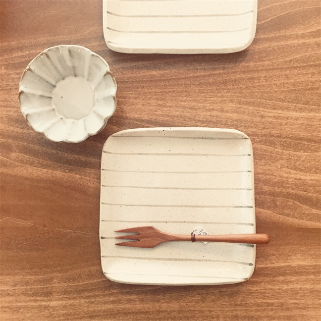◆ストライプ たたら正角銘々皿(サビ) ¥1,300- 20%OFF ⇒ ¥1,040-+tax
