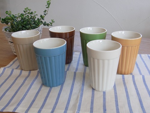 ロリエフカップ(オレンジ・アメ・グリーン・ベージュ・ホワイト・ブルー) 各¥750 + tax