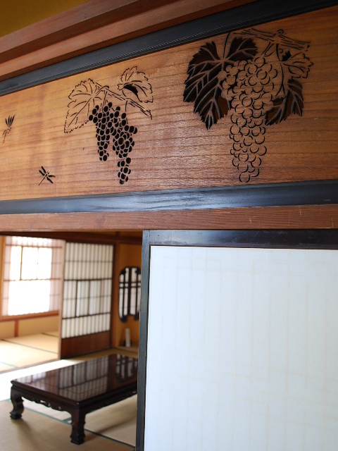 床板はブドウの木が使われているそう。床柱もブドウの木でした!