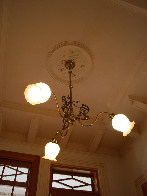 中に入ると吹き抜けの玄関ホールに装飾が施されています。