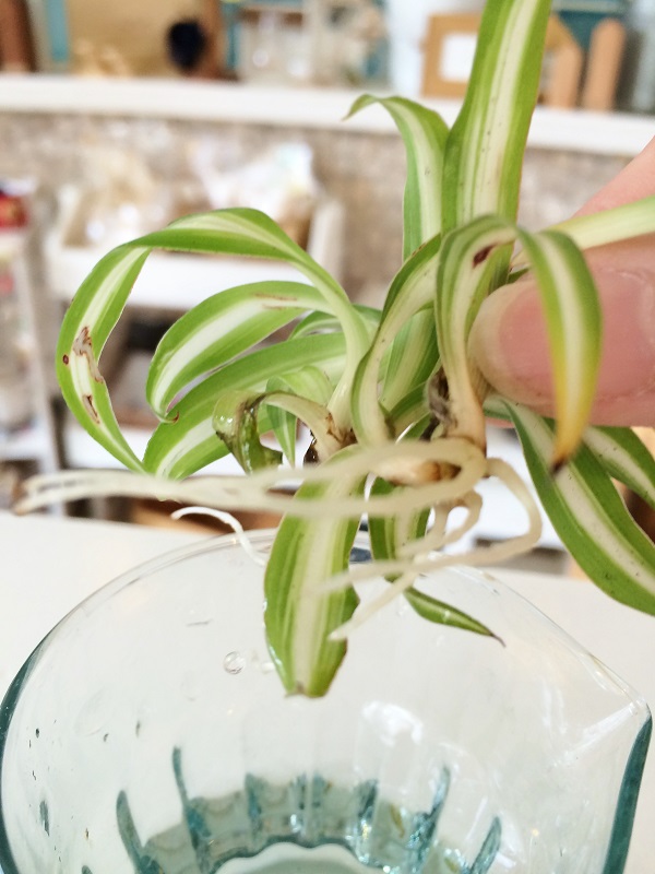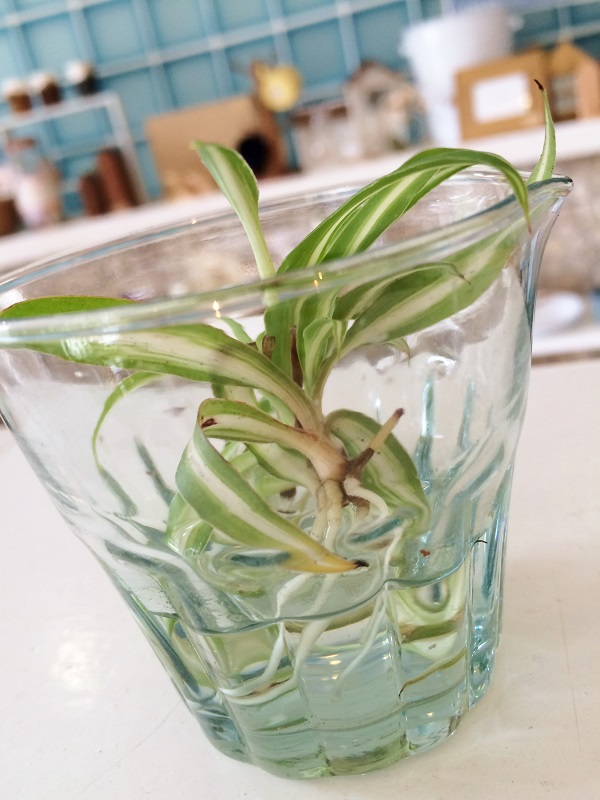 その子株をまずは水栽培で根っこを出してあげます。