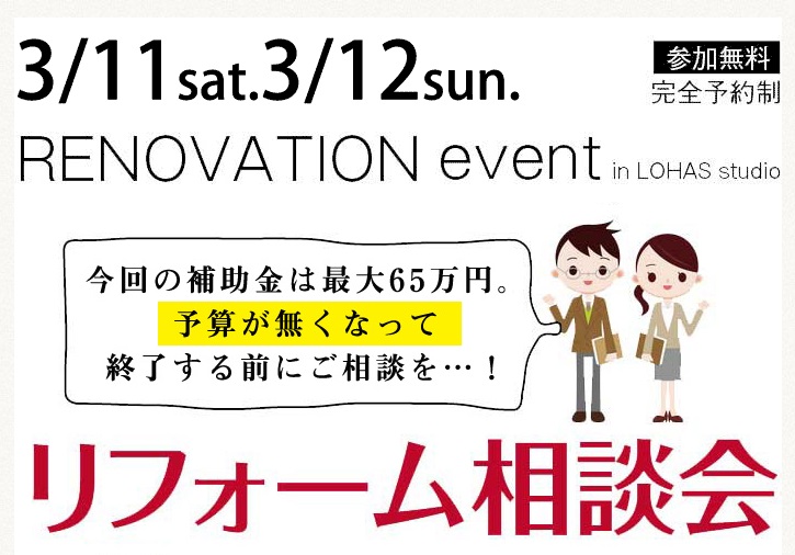 さて、LOHAS studio津田沼店でも春のリフォーム相談会開催致します。