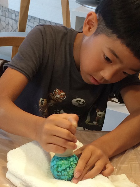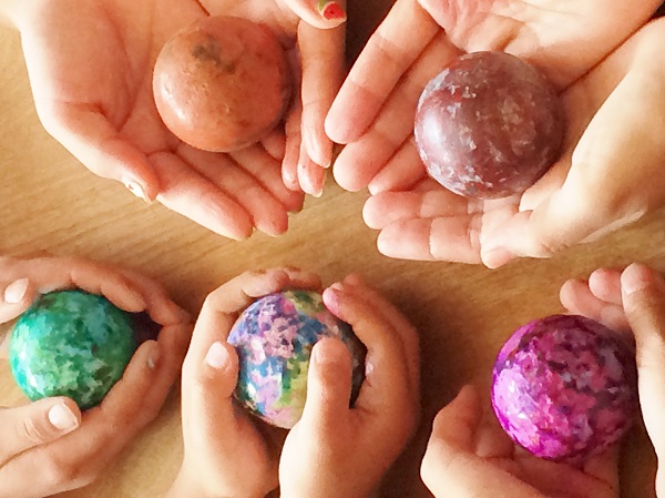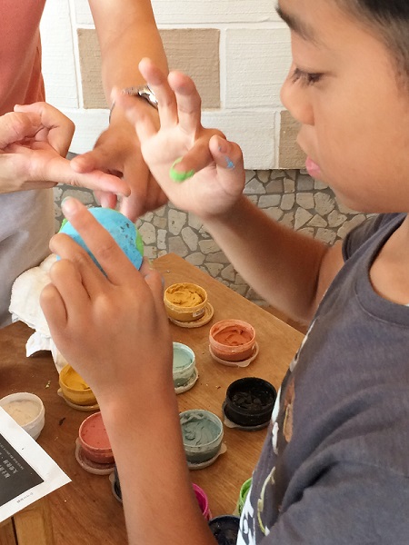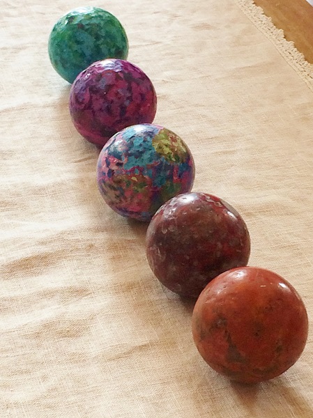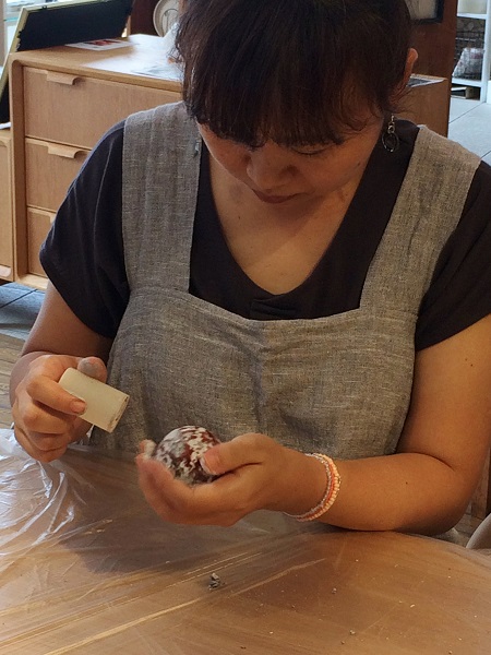 このどろだんごをキレイな丸に整えて色を付けていきます。