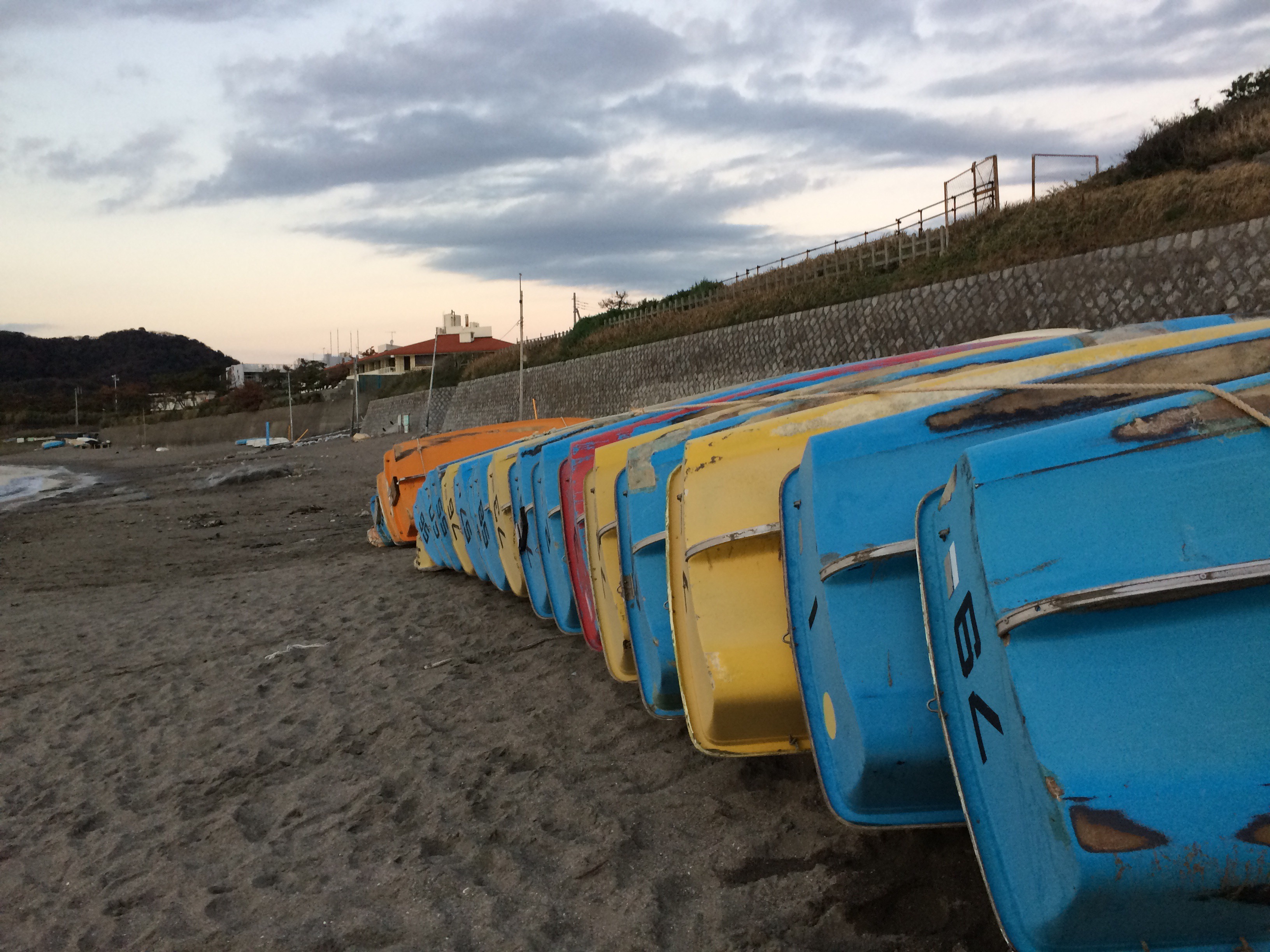 季節外れの海岸にはボートもお休み中。。。