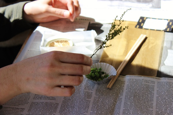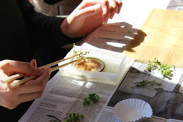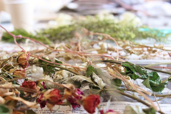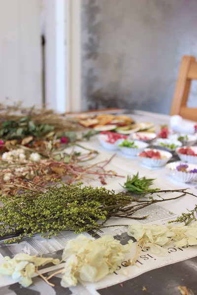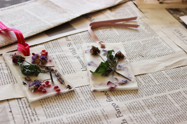まずは入れたいドライフラワーなどを選んで、タブレットの型を作ります。