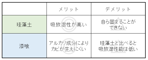 固める為の材料が必要ですが、漆喰は自ら固まる事ができます。