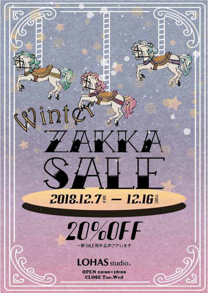 只今、LOHAS studioでは今年の締めくくりとして雑貨SALEを開催しております。