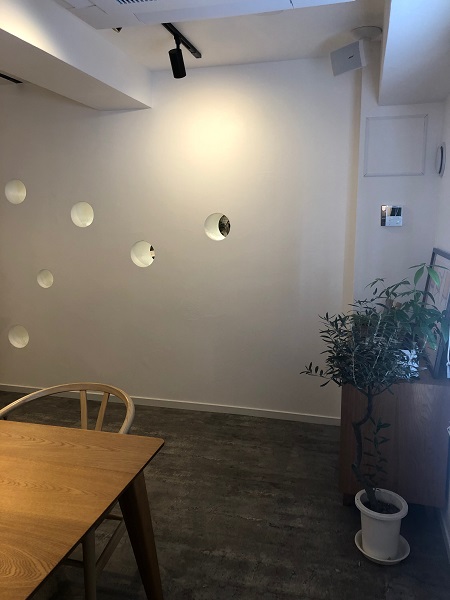 ダイニングの仕切りの壁には丸い穴が!!