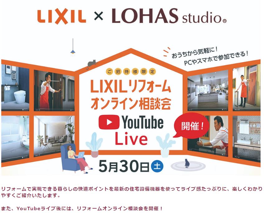 LIXIL × LOHAS studio リフォームオンライン相談会 おうちから気軽に!PCやスマホで参加できます!!