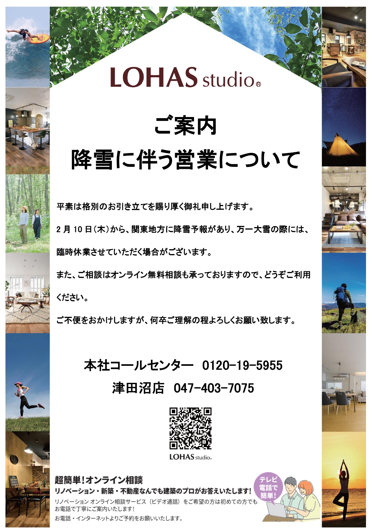 今後の天候の状況により、臨時休業させていただく場合がございます。