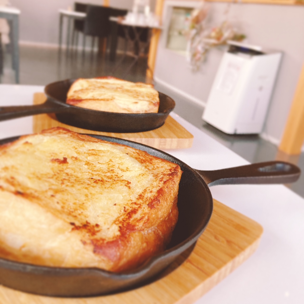 オーブンで焼いているのか、表面カリッ&中はじゅわっとした、甘さ控えめトースト。