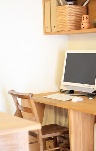 造作のデスクや壁面の棚も、有効活用していただいてました。