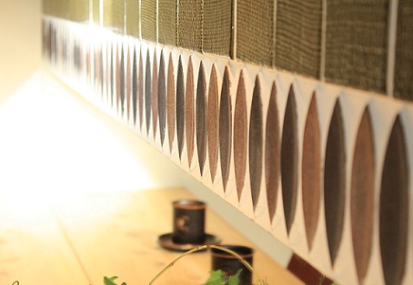 カウンター上部のタイルの仕上げは、デザイナーのこだわりどころ。