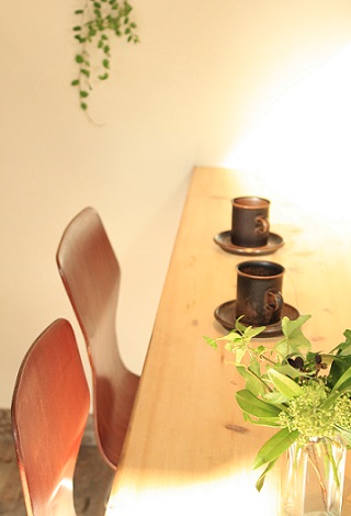 ご主人が豆を 生豆から焙煎している間、お客さまに試飲などしていただくカウンター席。