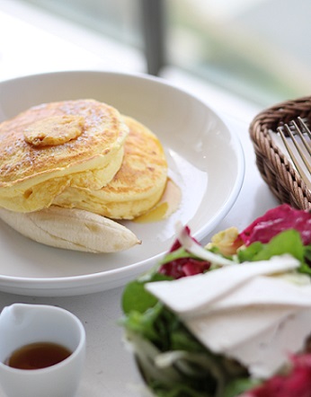 もちろん、有名なパンケーキもいただき、ラテアートも堪能。