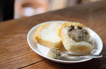 料理上手のスタッフがくれたレバーペーストをトーストに塗って。