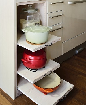今回のリフォームでは、いくつかお持ちの鍋の収納棚を造作。