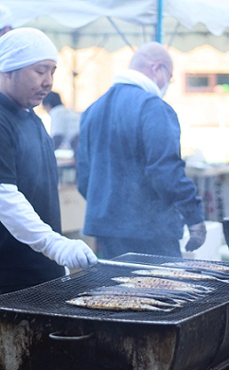 ランチの時間・・「さんま焼いてたぞ~」と、美味しそうなさんまを片手に戻ってきたスタッフが。。 なになに?!と、興味津々で調べてみると、 東北復興支援を目的とした『女川さんま炭火焼き』イベントが開催されていたのでした。 宮城県女...