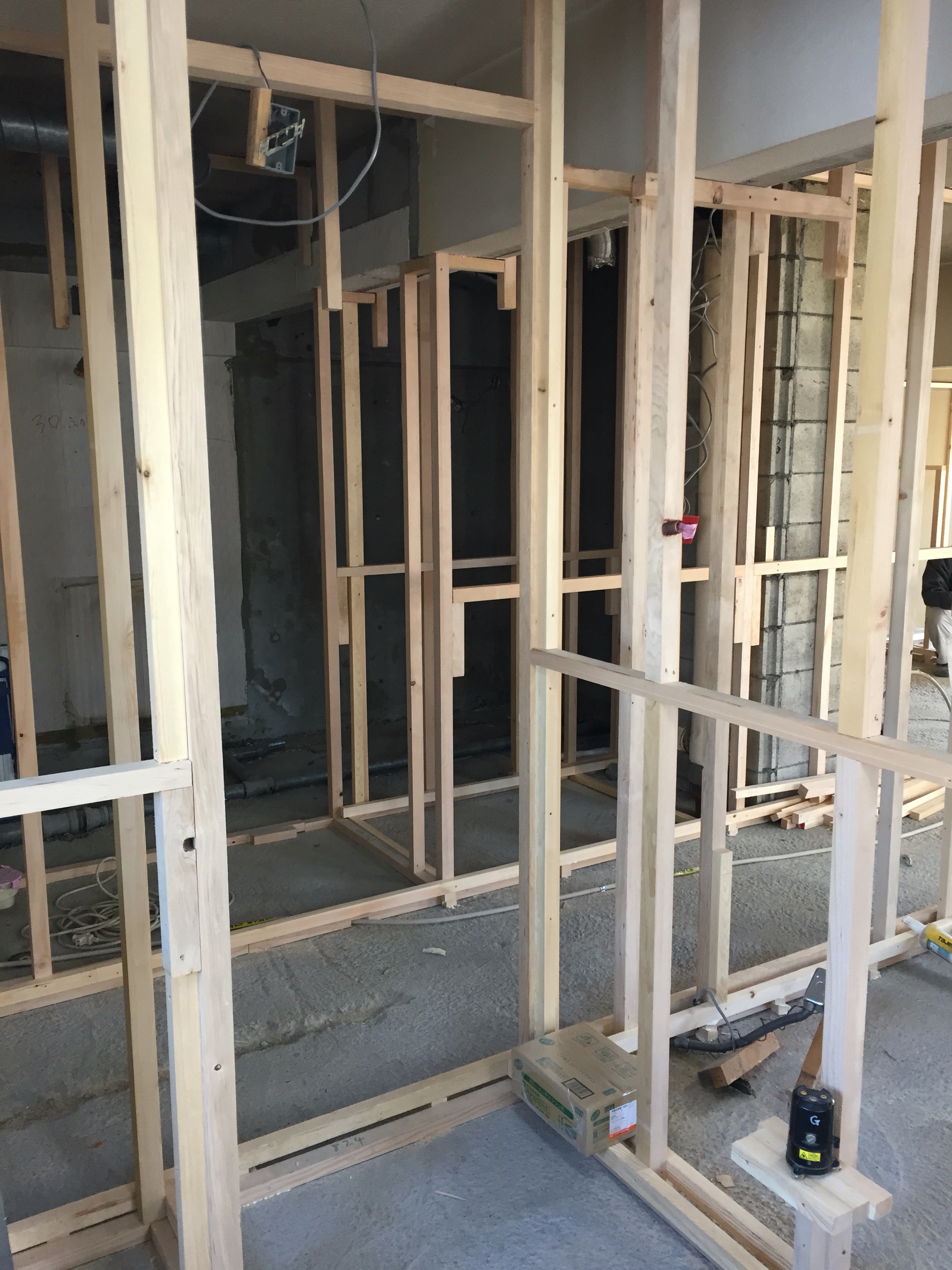 壁の位置が決まり、お部屋のカタチが見えてきました!