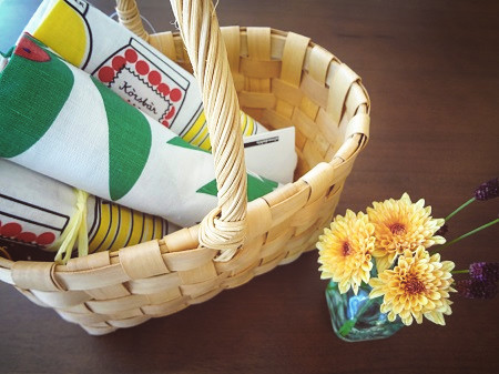 北欧らしく、樹皮のバスケットに入れてディスプレイ♪