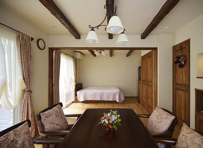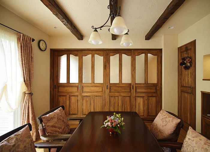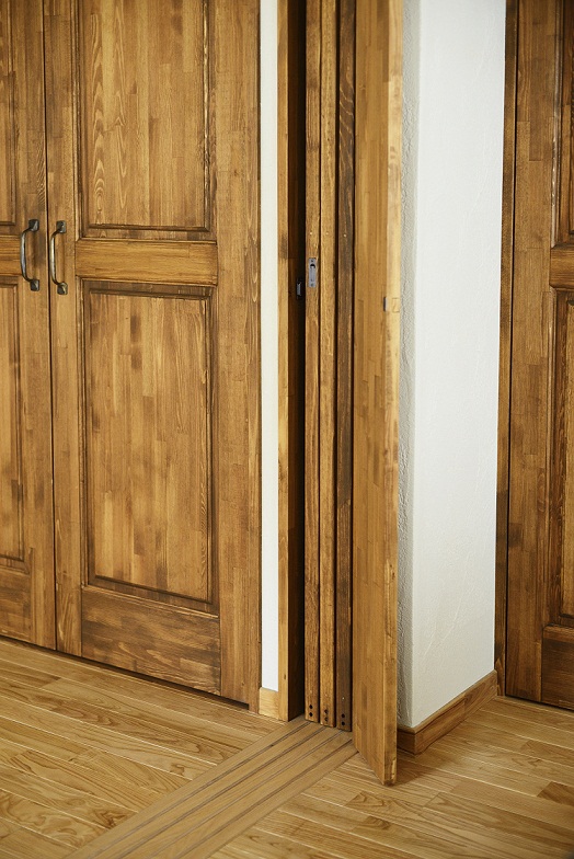 横浜市のM様のお家では、リビングと寝室をつなぐ間仕切りドアを作りました。