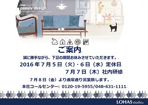LOHAS studio 全店では、誠に勝手ながら 明日より3日間 お休みさせていただきます。