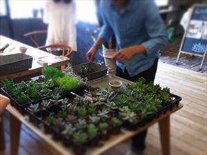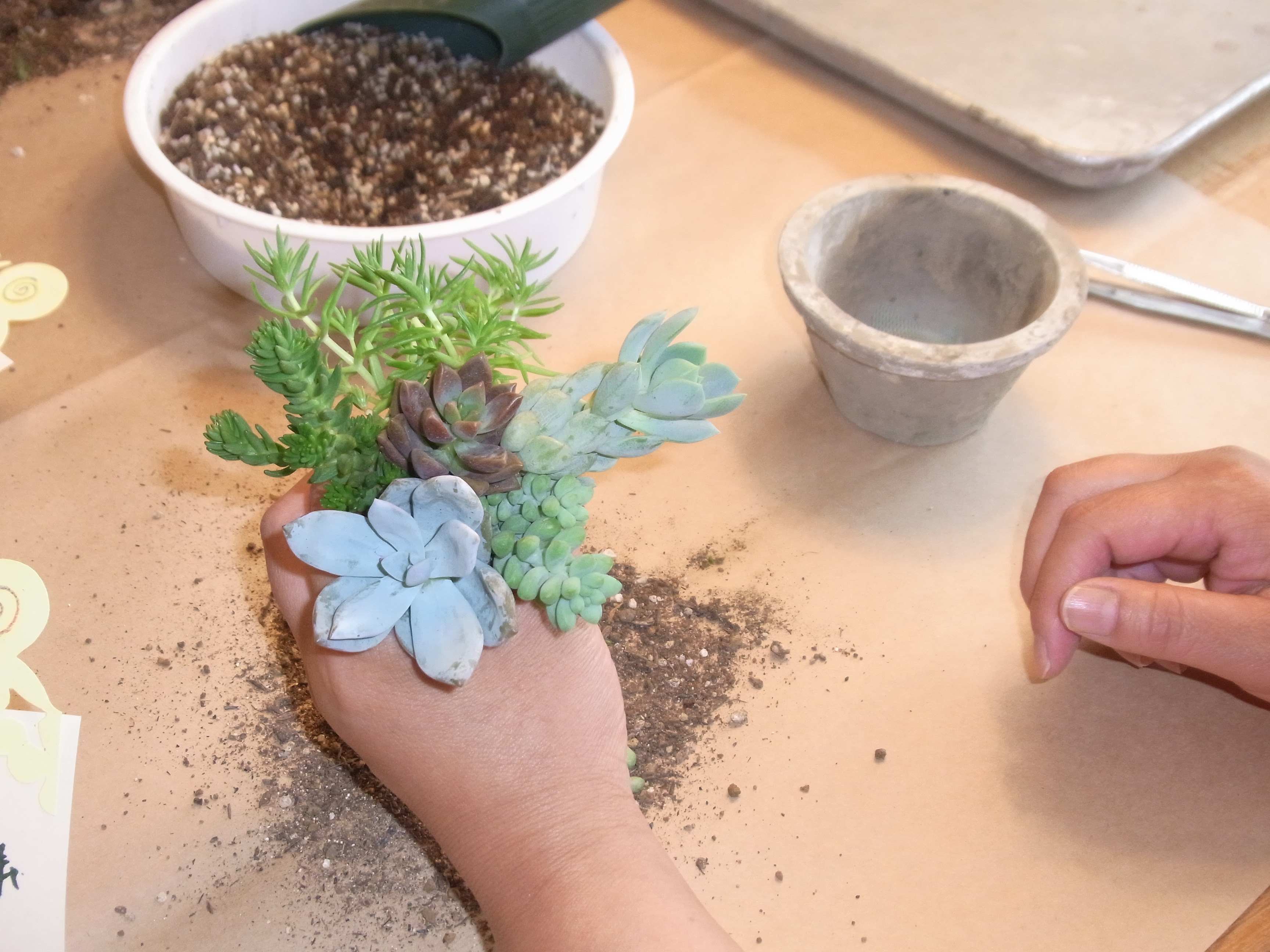 テラコッタの鉢に、思い思いの多肉植物を選び小さな緑のオアシスを作成♪