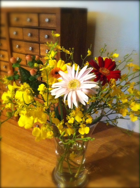 そんな日だからこそ、スタジオに春をと思いビタミンカラーの