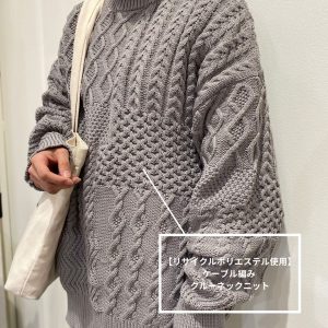 『【リサイクルポリエステル使用】 ケーブル編み クルーネックニット』