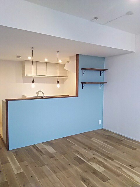 お子様の様子を見ながらお食事の用意をしたいとの事で 壁を向いていたI型キッチンから対面キッチン(トクラス ベリー)に変更しています。