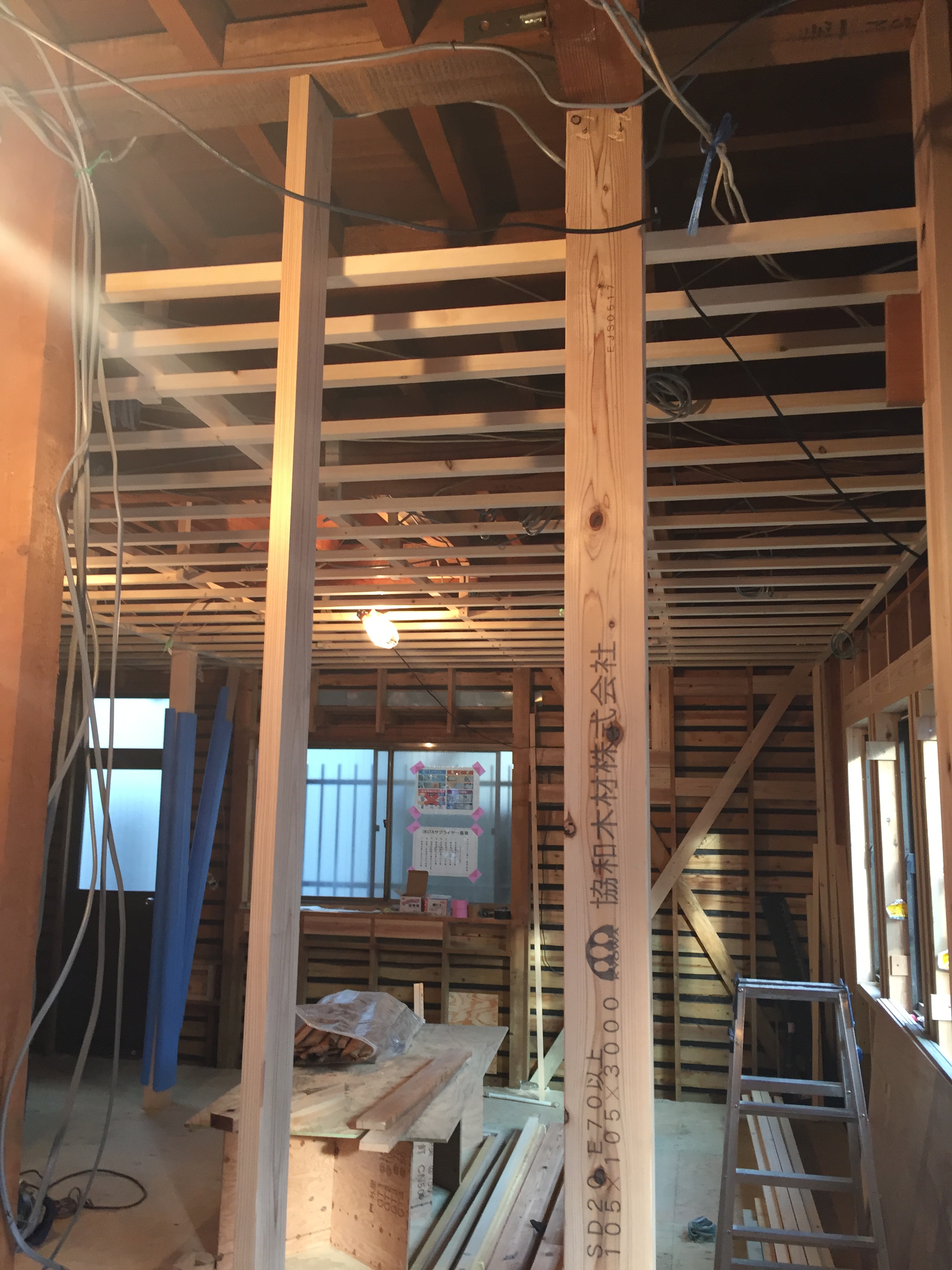 解体が終了し、構造の補強と中間間仕切りを作成。
