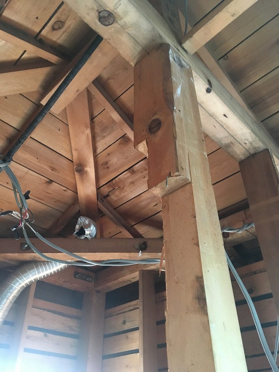 ユニットバスを解体したところ既存ドアが入らなかった為かドア横の屋根を支えている柱が