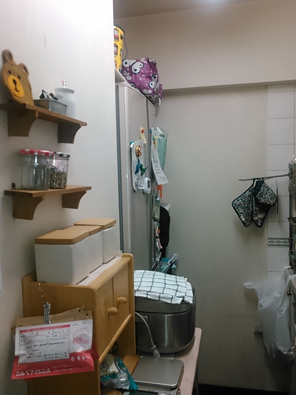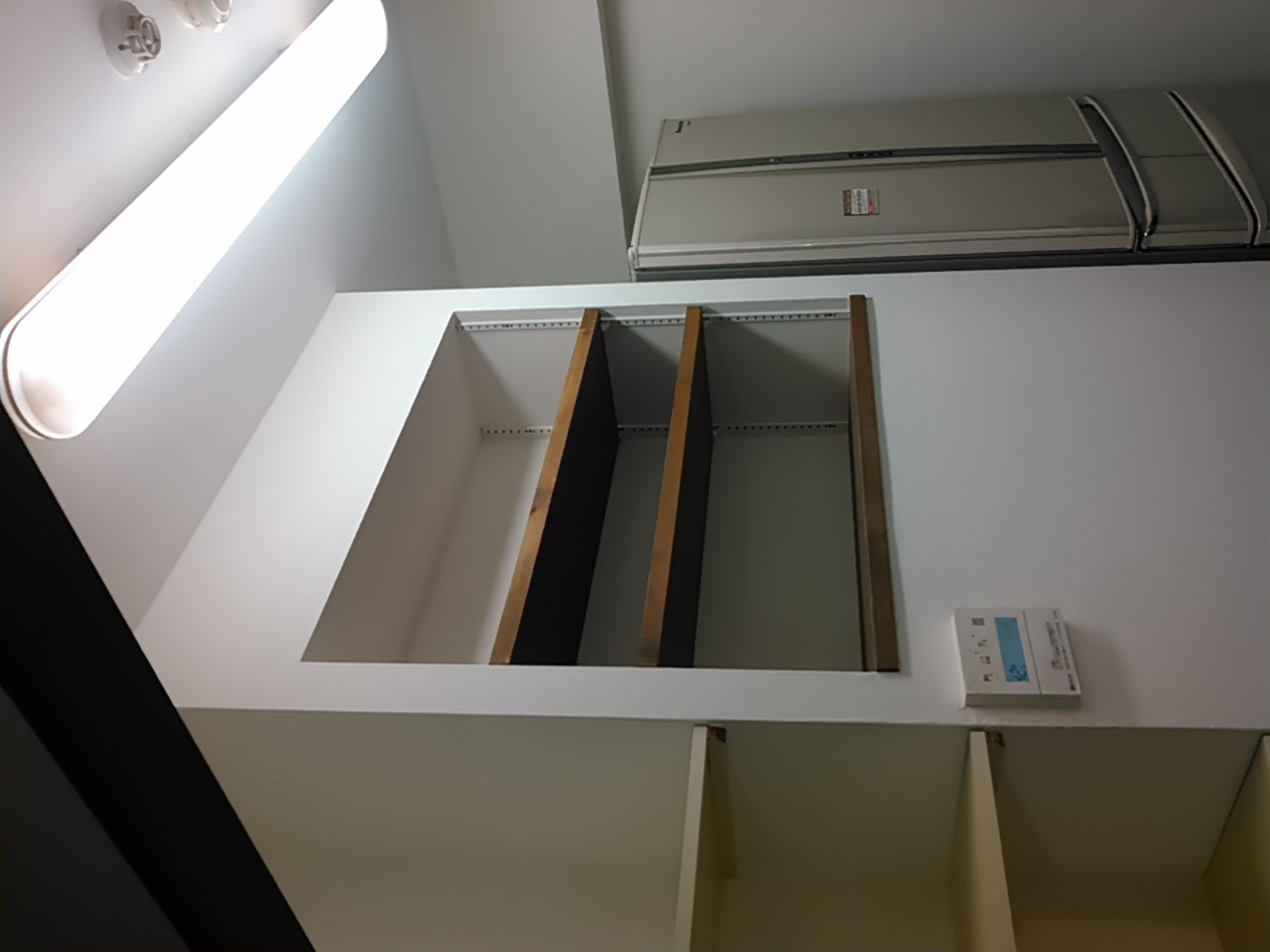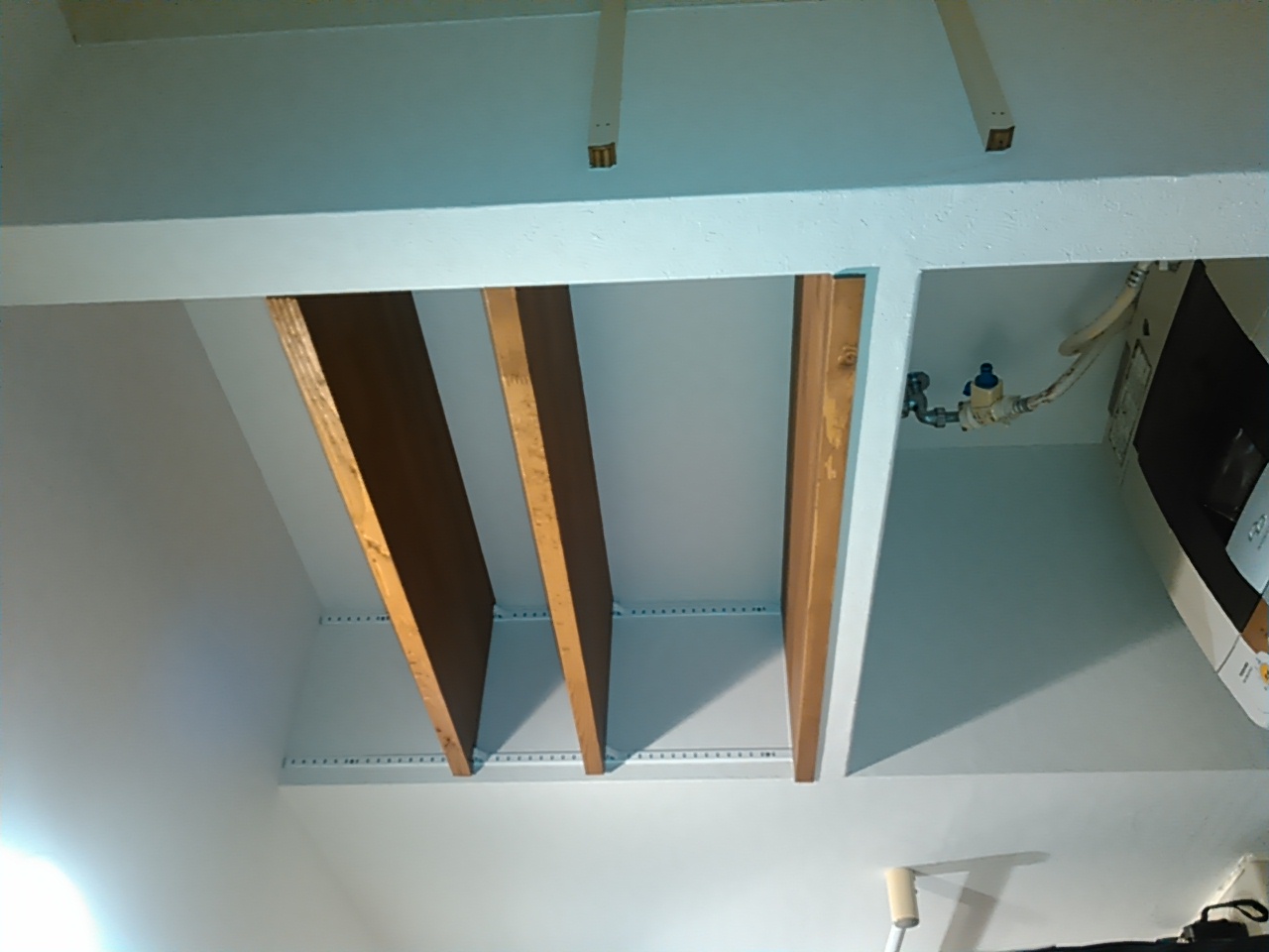 もともと洗濯機上部のみの空間でしたが奥行の半分をキッチン側に両面使いに造作。これでキッチンが今までより整理が出来ました。