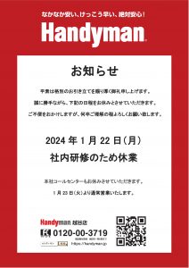 1/22(月)は社内研修のため、クローズとなります。 ...