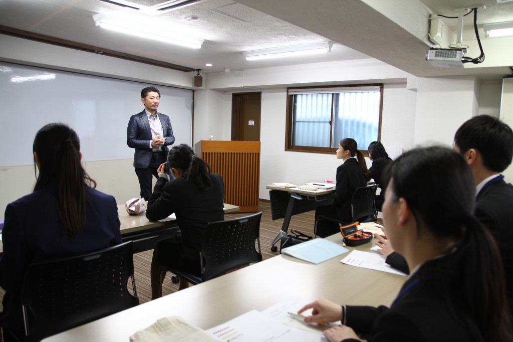 お辞儀や敬語、挨拶や名刺の受渡しなどを教えています。