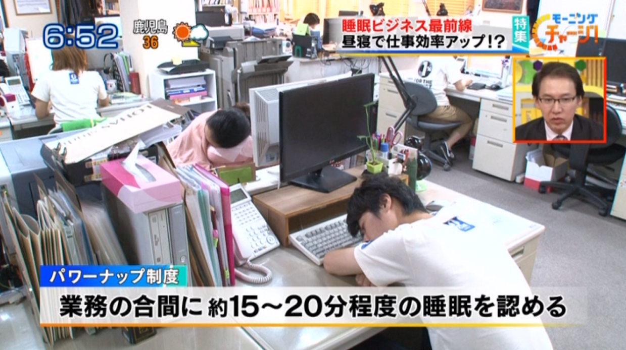 メディアによく紹介して頂きますが、15~20分の睡眠で眠気がとれて、その後はスッキリした頭で働けます。