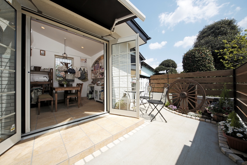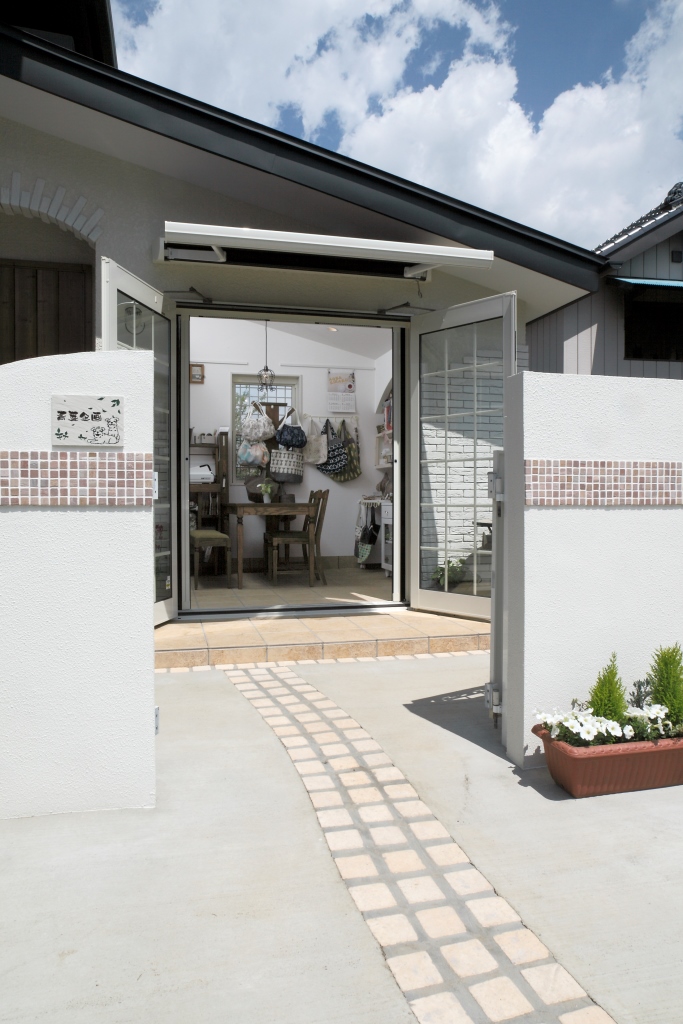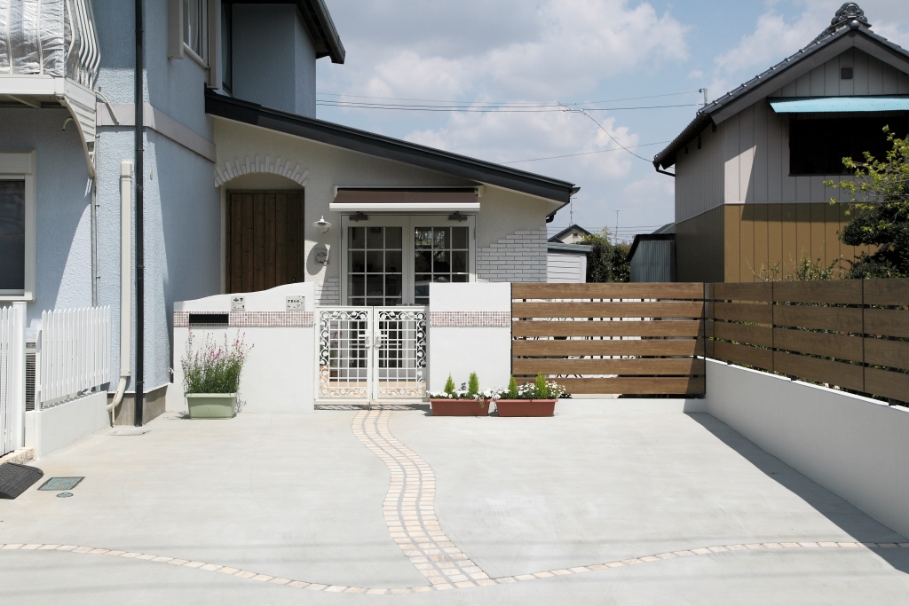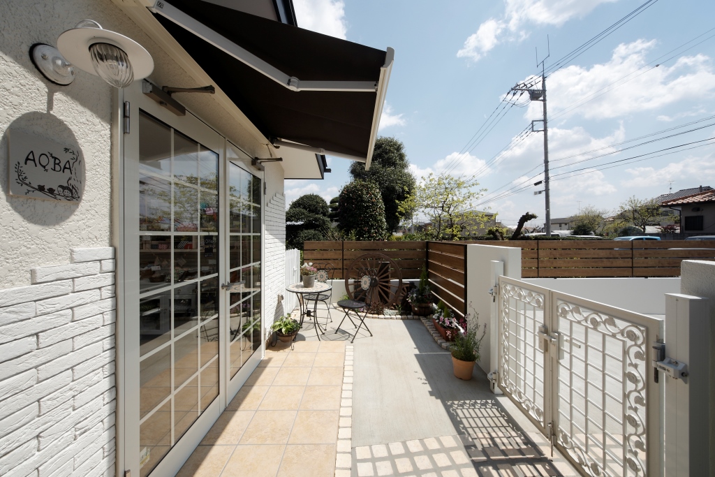 ブルーの外壁と玄関ドアの木目のマッチングが素敵ですね◎