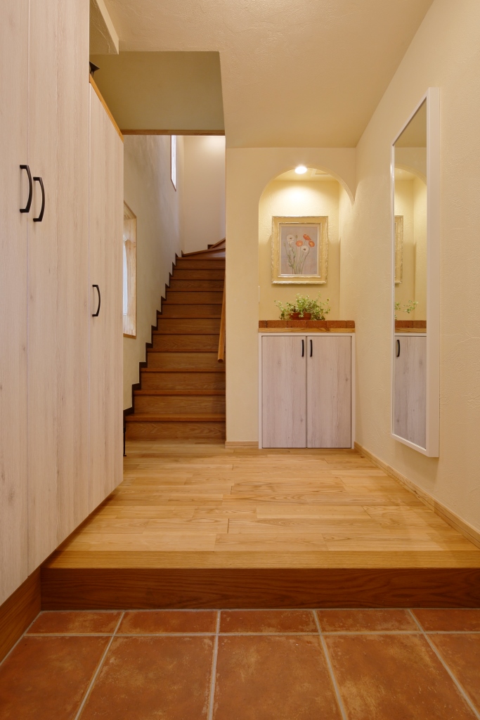 もともとあったのですが、R開口にして建具を弊社の無垢扉に交換。