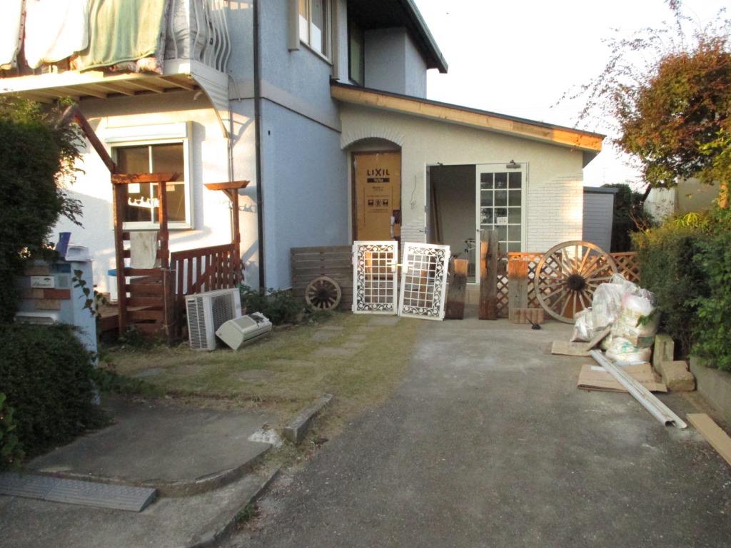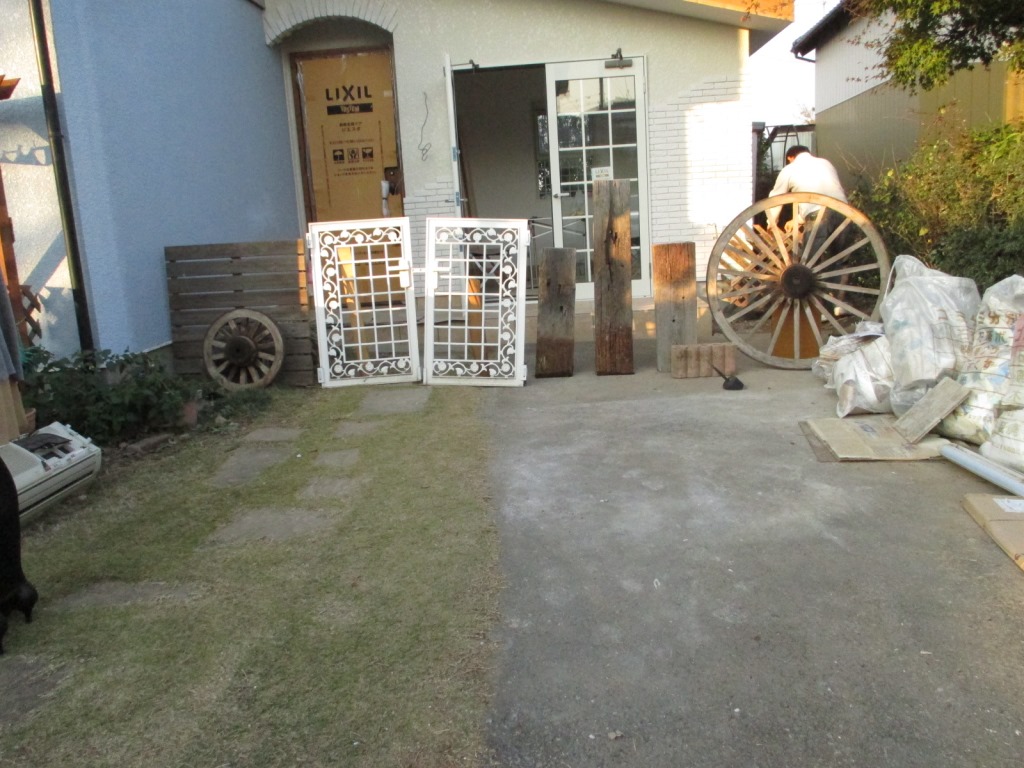奥に見える白い増築部は、施工中の雑貨ショップです。