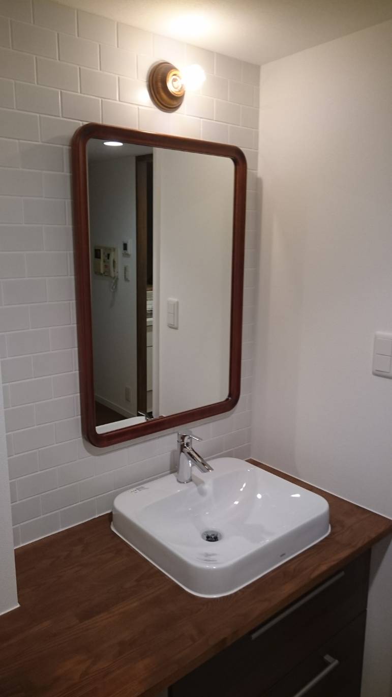 既製品の洗面台にアレンジしてシンプルでオシャレな洗面台に変身