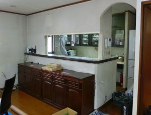 工事前も対面式のキッチン配置でしたが、、、