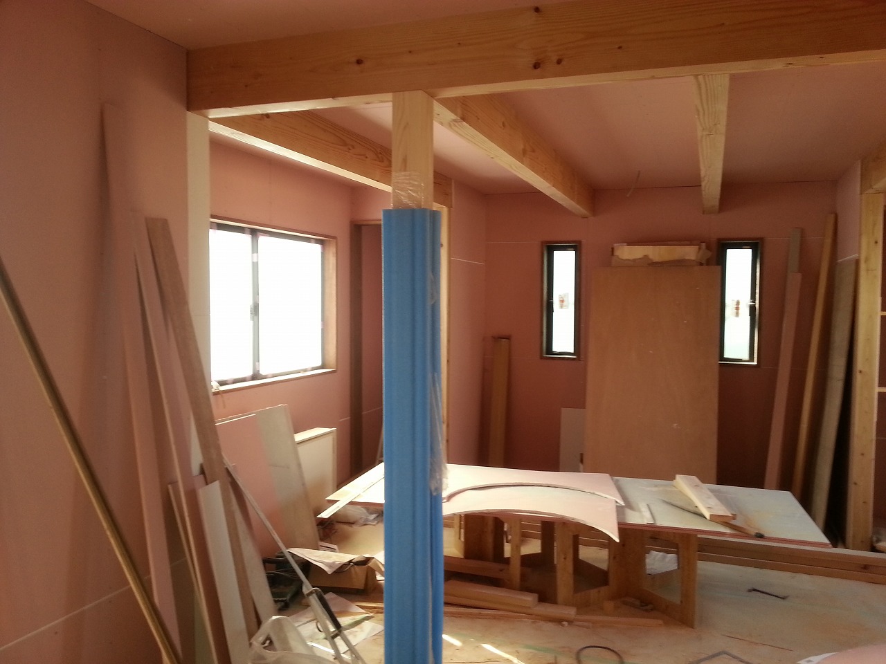 ピンクの石膏ボードは、環境にやさしいハイクリーンボードです!