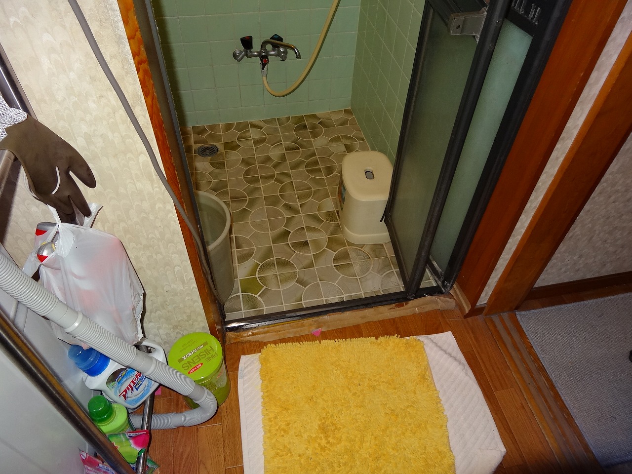 今まで事務作業に使用していた階段下に脱衣所を設け、収納スペースも盛り込みました!タイルのお風呂もユニットバスになり、暖かくなりました!