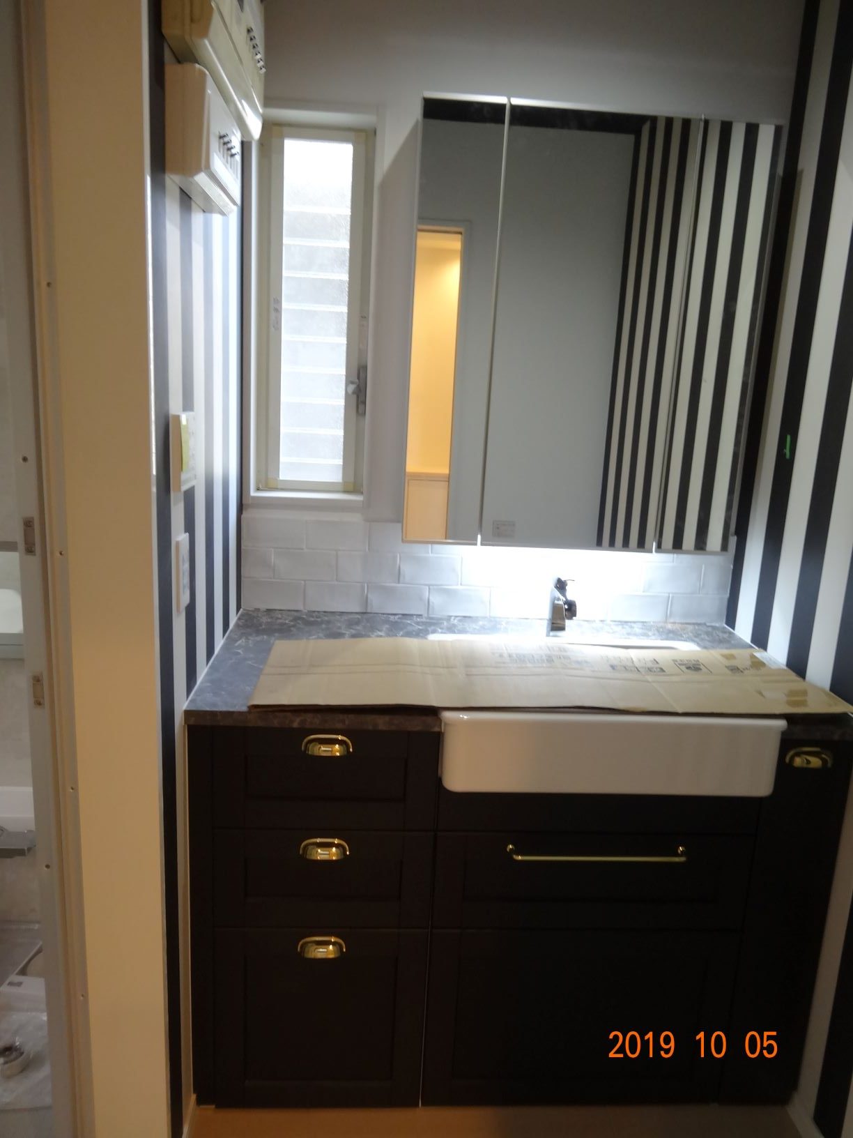 洗面化粧台の向きを変えてIKEA製の幅の広い化粧台へ交換しました。 交換前 交換後