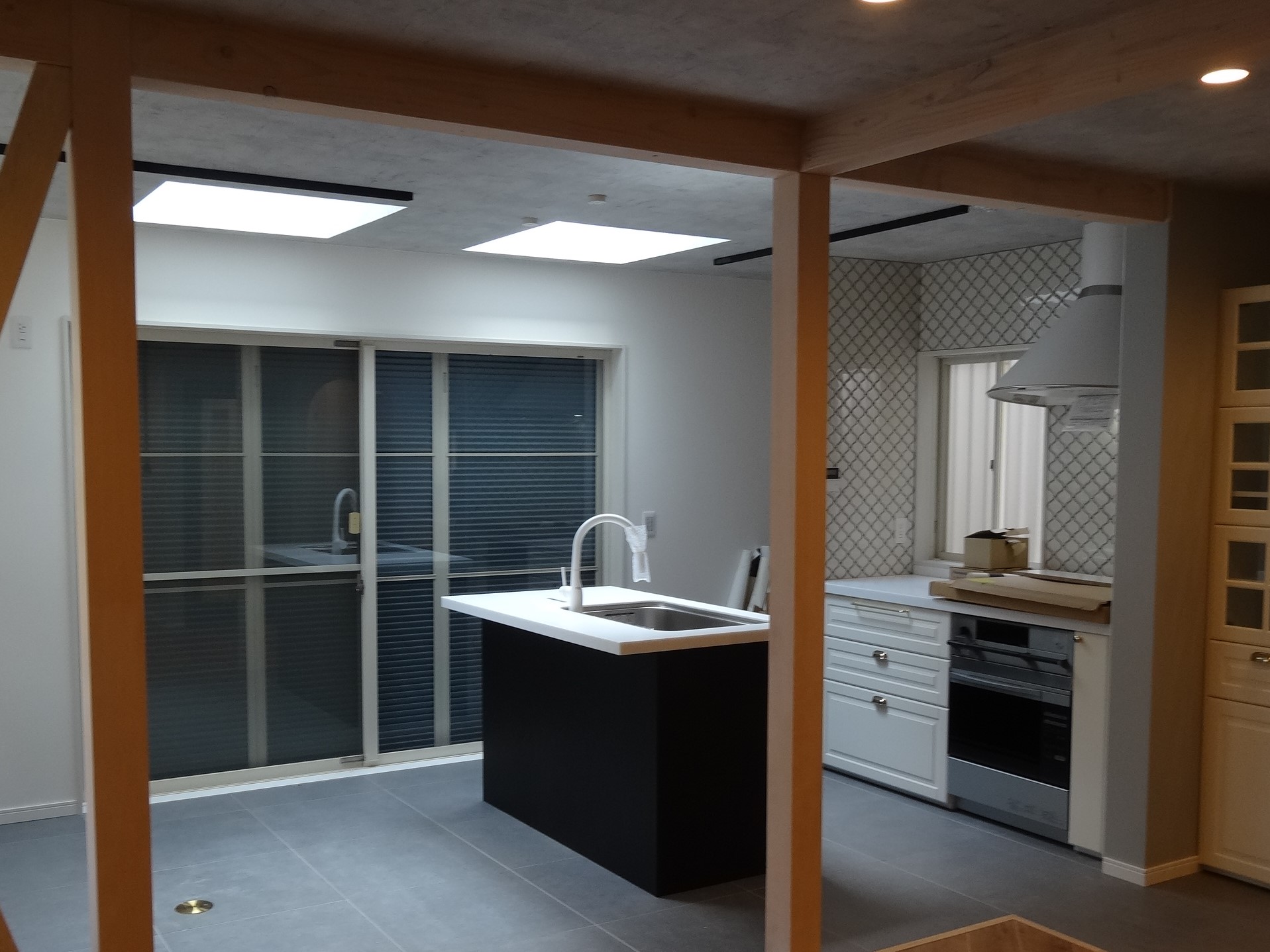 壁付けI型キッチンを位置をずらして2列型キッチンへ変更