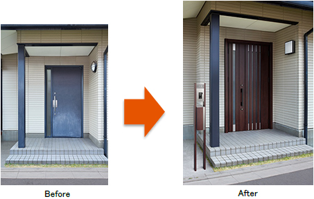 リシェントは既存の玄関枠をのこしたまま、上から新しい額縁等でカバーし新しいドアを取り付けるリフォーム商品です。
