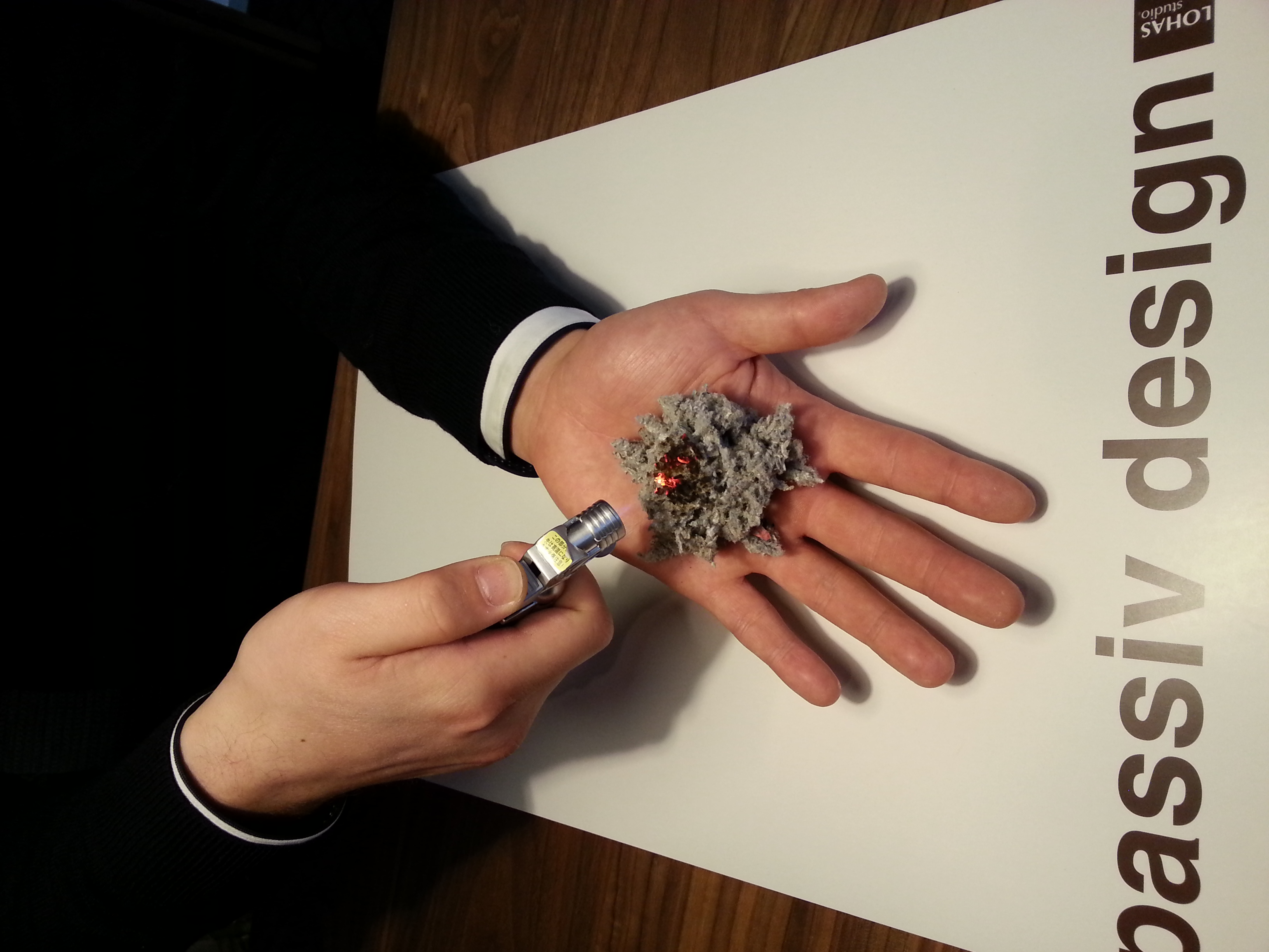 セルロースファイバーはホウ酸を添加することにより、難燃性で延焼しにくい断熱材です。また燃えても