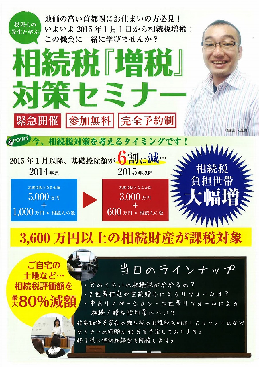 ◆いよいよ2015年1月1日から相続税増税!この機会に一緒に学びませんか?