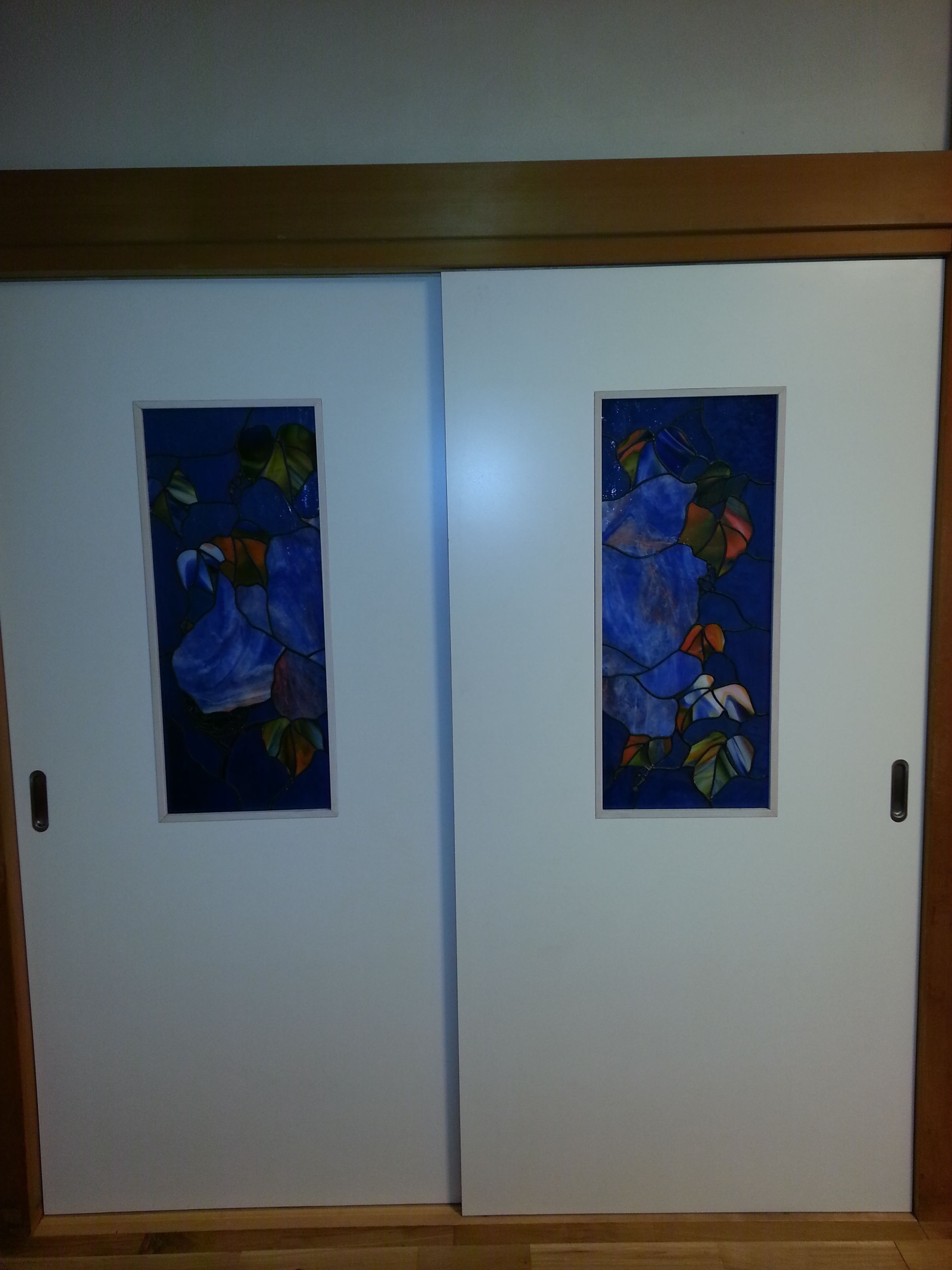 先日、お引き渡したお客様宅の建具ですが、 たんなる明かりとりのガラスではなく 思い出のステンドグラスを引戸に埋め込みました。 虹色の光がキッチンに降り注ぎます。