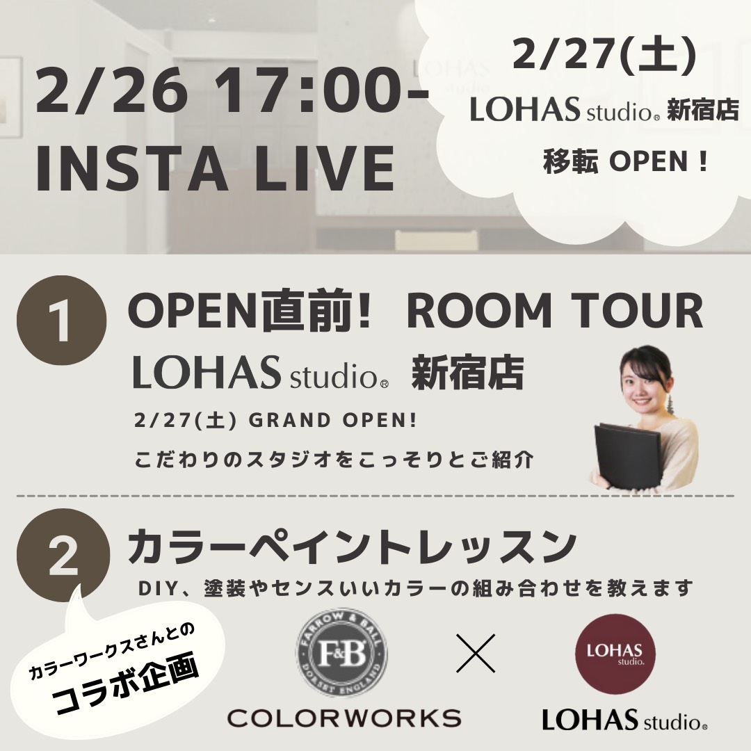 この度、LOHASstudio新宿店が、2021年2月27日(土)移転オープンいたします。 そこで、オープン前の2月26日(金)にこっそり新たな新宿店のこだわりポイントを「Instagram・YouTube」のライブ生配信でご...